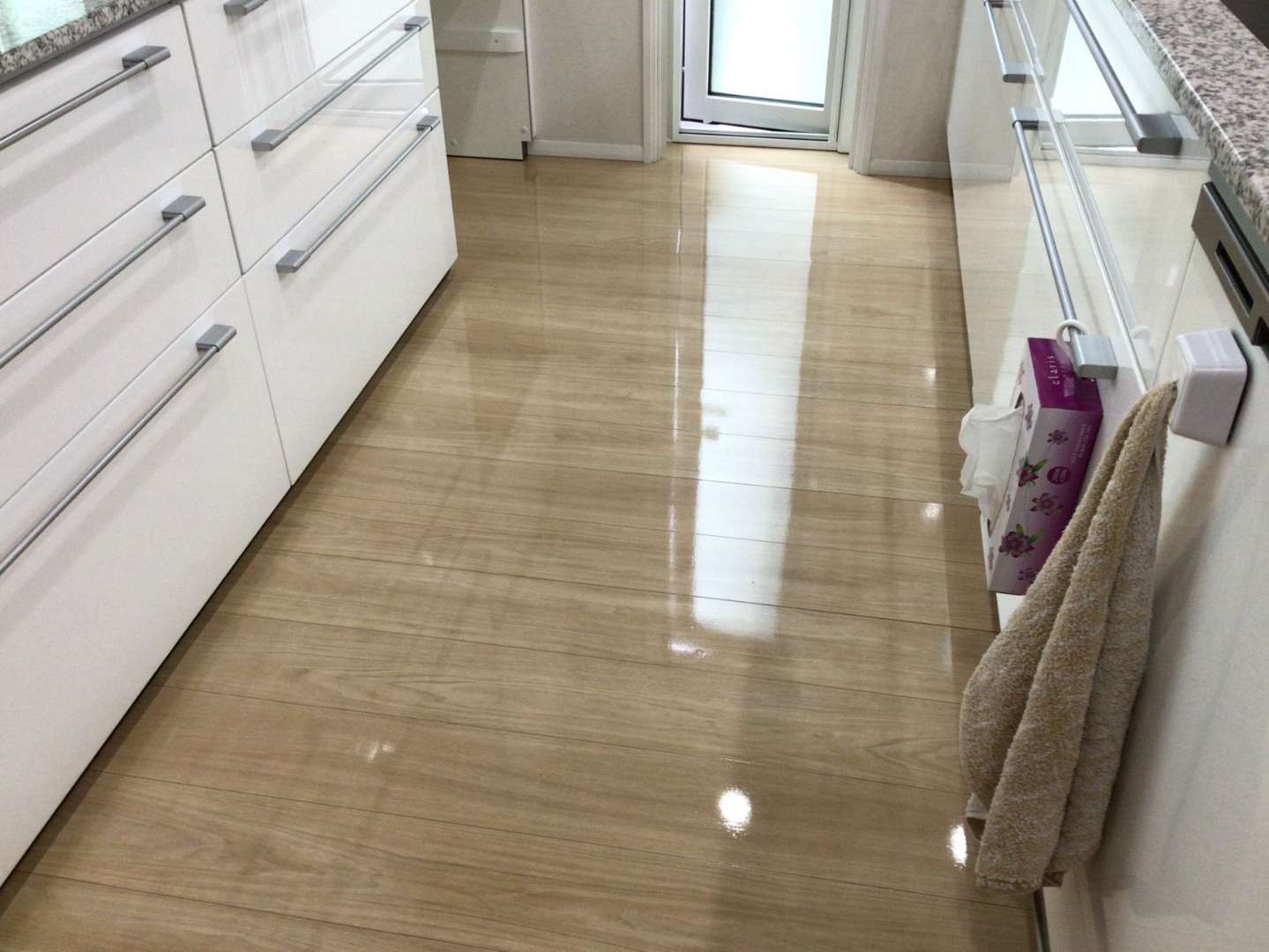 しても、床材に染み込む前にサッと拭き取ることができます。さらに、従来のワックスでは禁